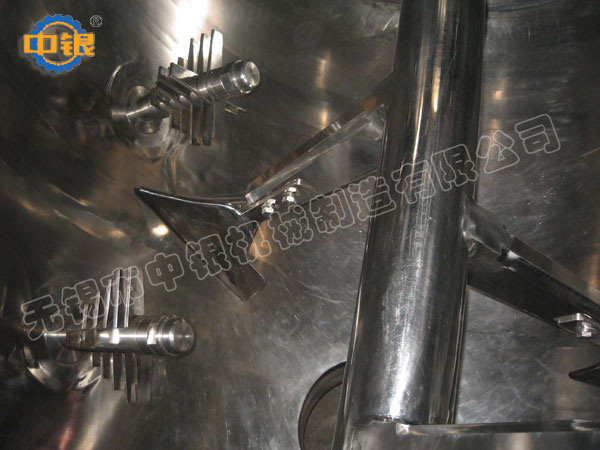臥式犁刀式高效混合機(jī)混合時(shí),機(jī)內(nèi)物料在犁刀的作用下,一方面沿筒體內(nèi)壁作用向徑向湍,另一方面又沿犁刀兩側(cè)面的線方向飛濺。當(dāng)物料流經(jīng)飛刀時(shí),被高速旋轉(zhuǎn)的飛刀強(qiáng)烈拋散,在犁刀和飛刀的復(fù)合作用下,使物料不斷的對(duì)流、擴(kuò)散、翻動(dòng),從而在極短的時(shí)間內(nèi)達(dá)到均勻的混合。